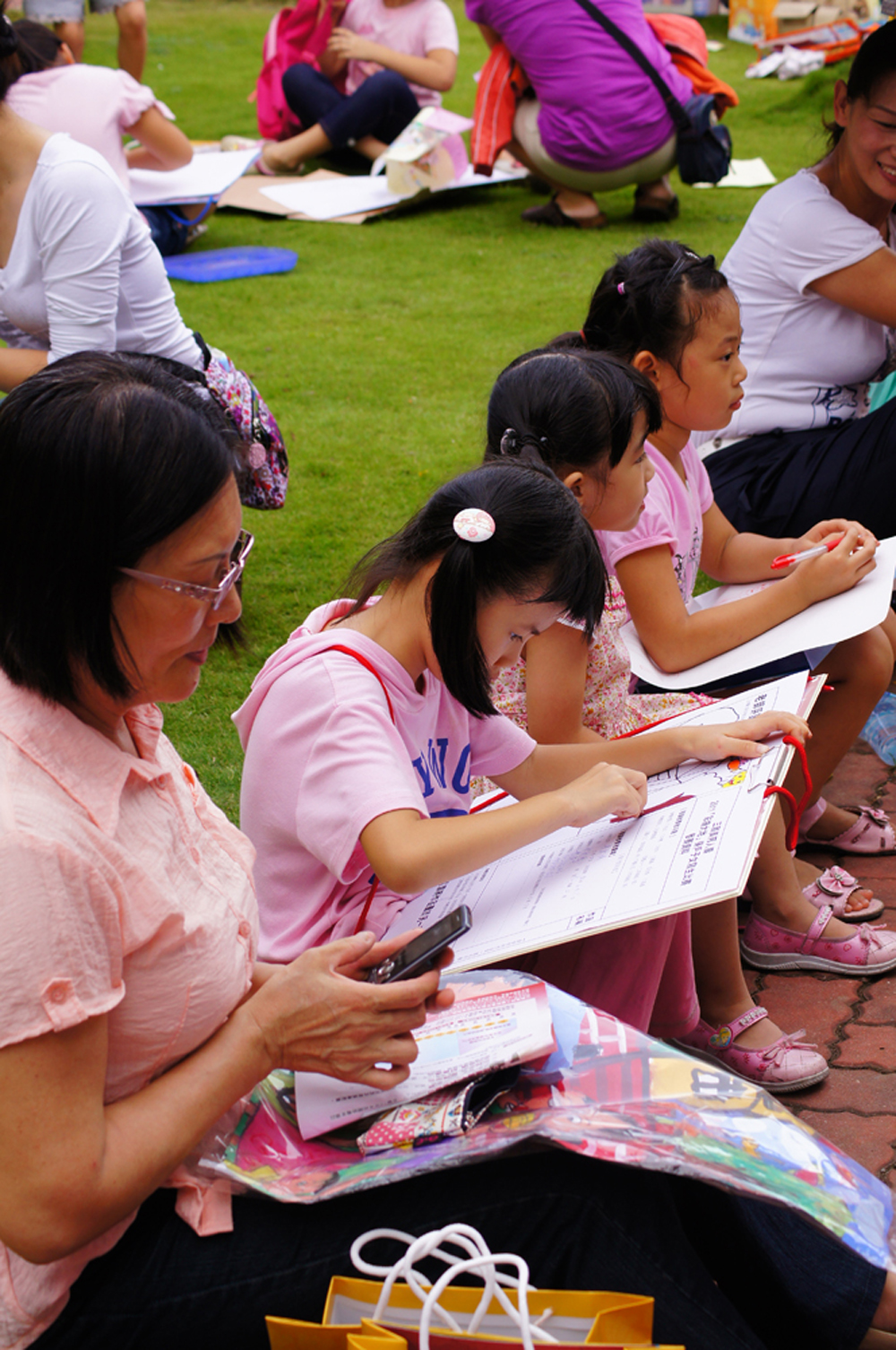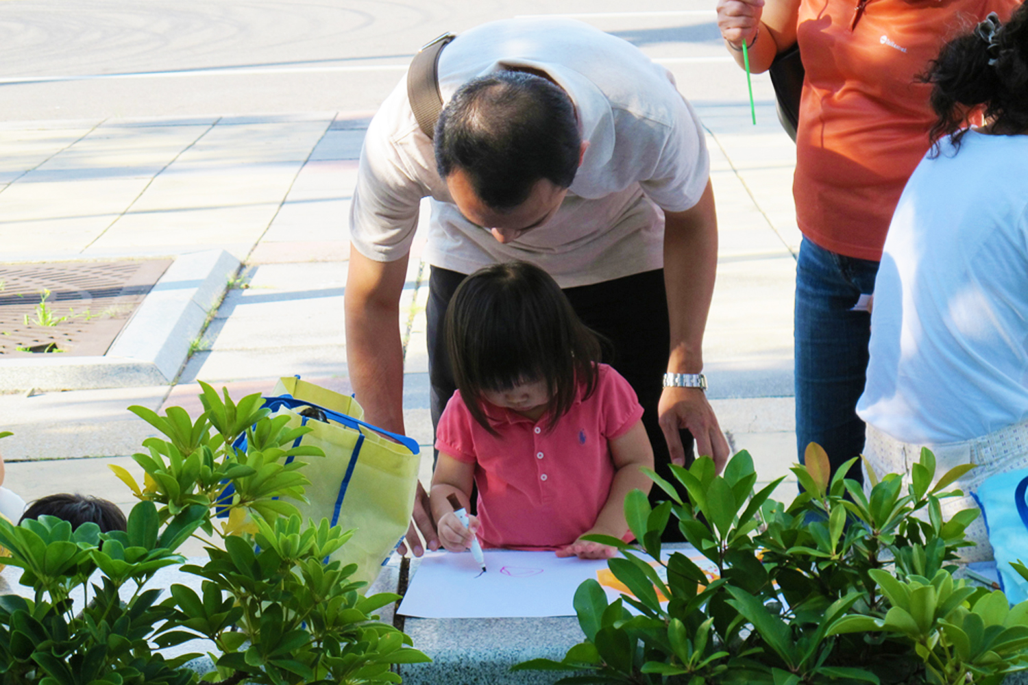 原本陽光普照的好天氣,讓活動時間未到,現場就擠滿了全家出動的大小朋友。由三商Boby與同仁帶來熱鬧的舞台表演,讓台下的小朋友都不禁跟著動起來。看著身旁的寶貝兒女,一筆一畫認真的繪畫,爸爸媽媽都露出了驕傲的笑容。