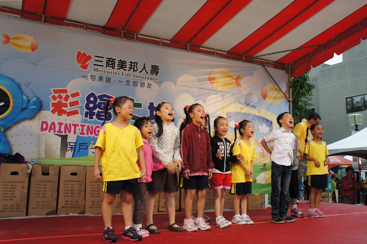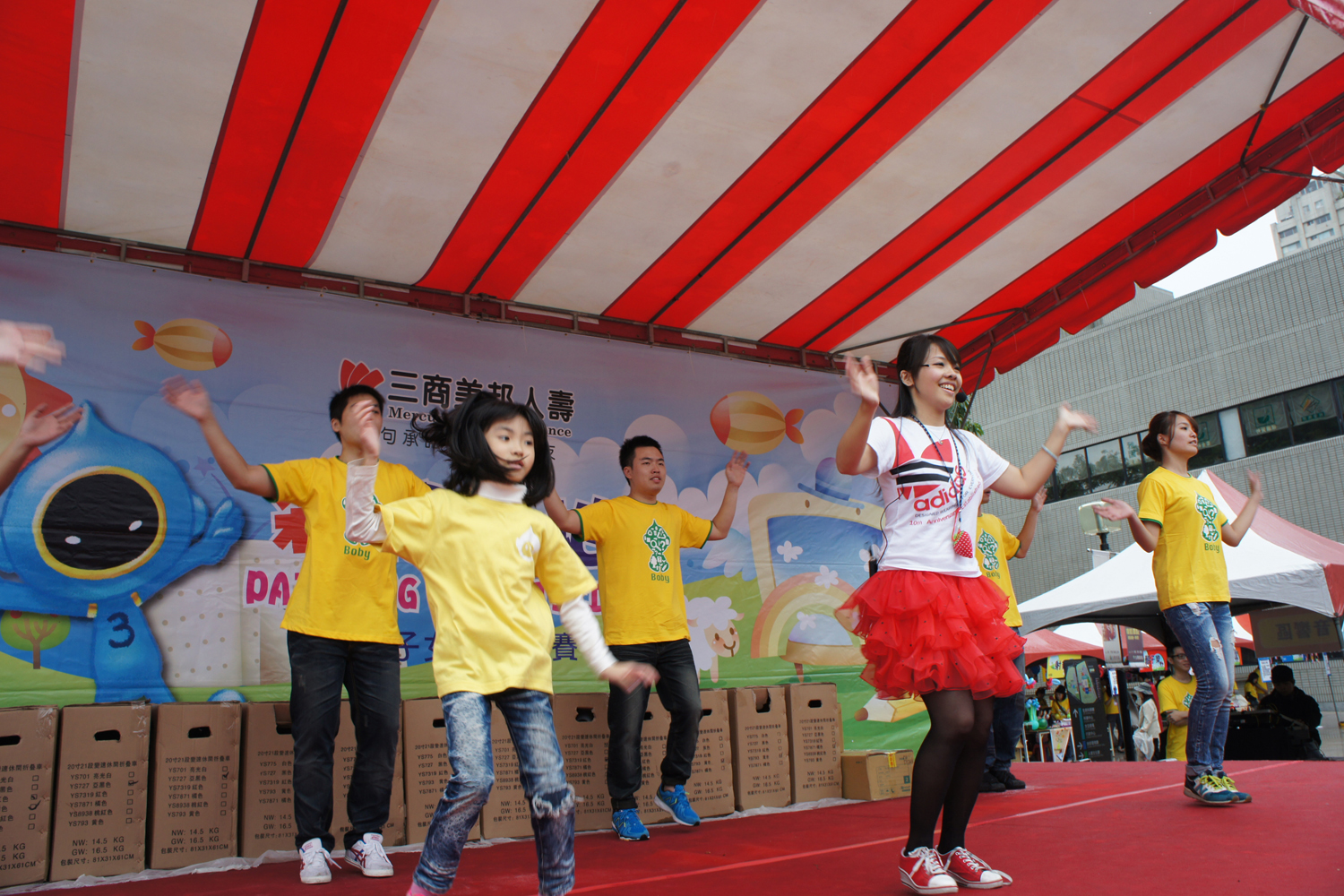 小朋友在舞台上唱唱跳跳,大家都玩得好盡興。