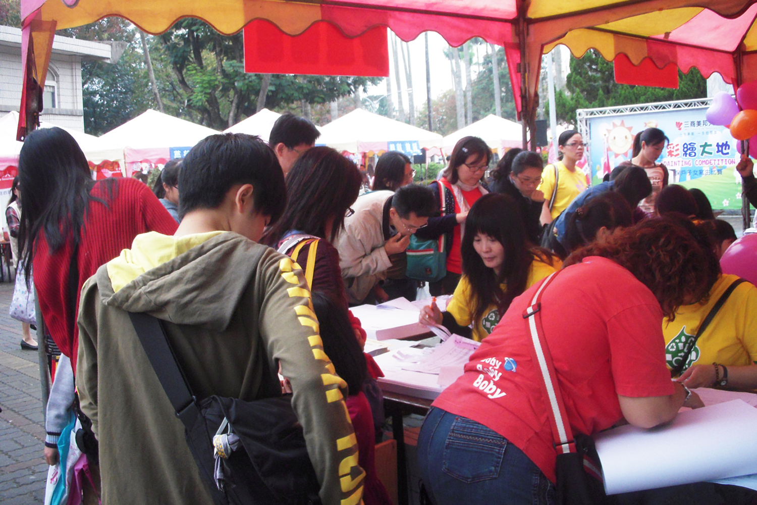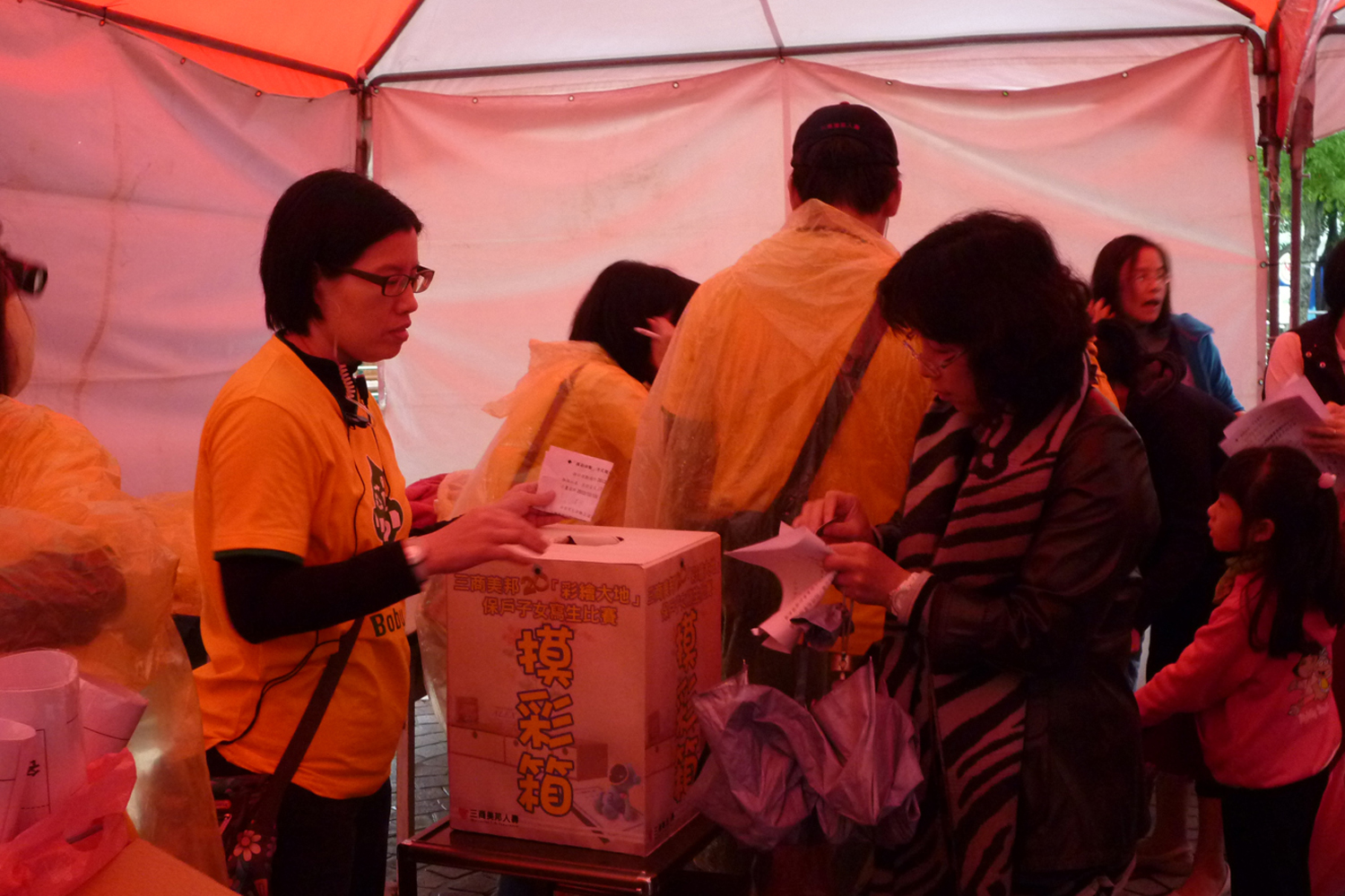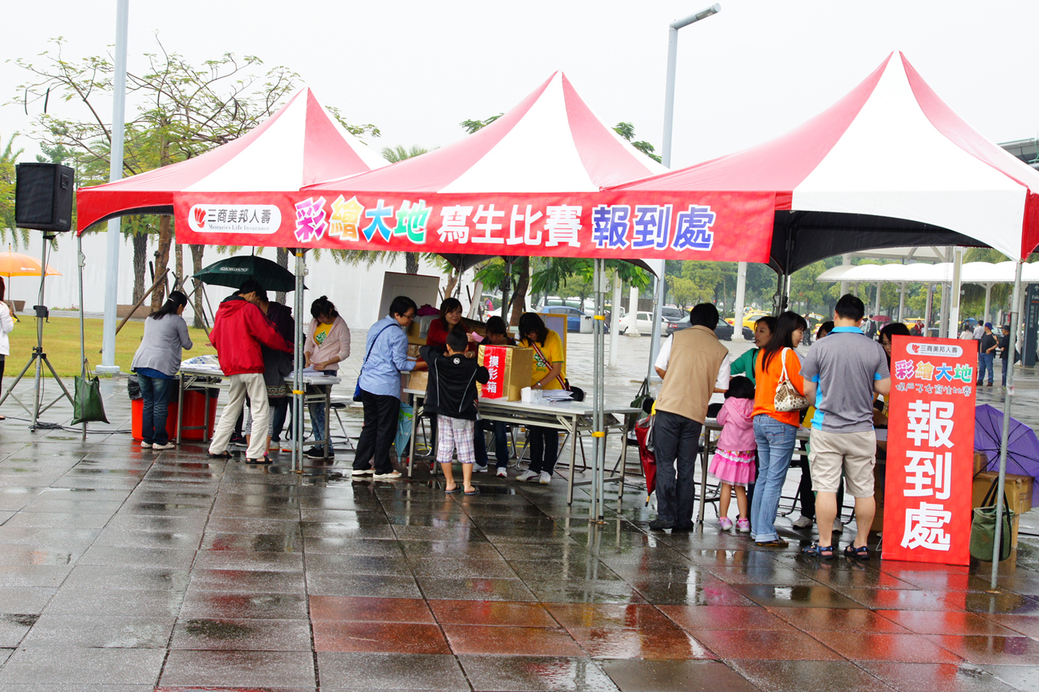 活動當天雖然天公不作美,但是大家依然熱絡地來領畫紙喔!