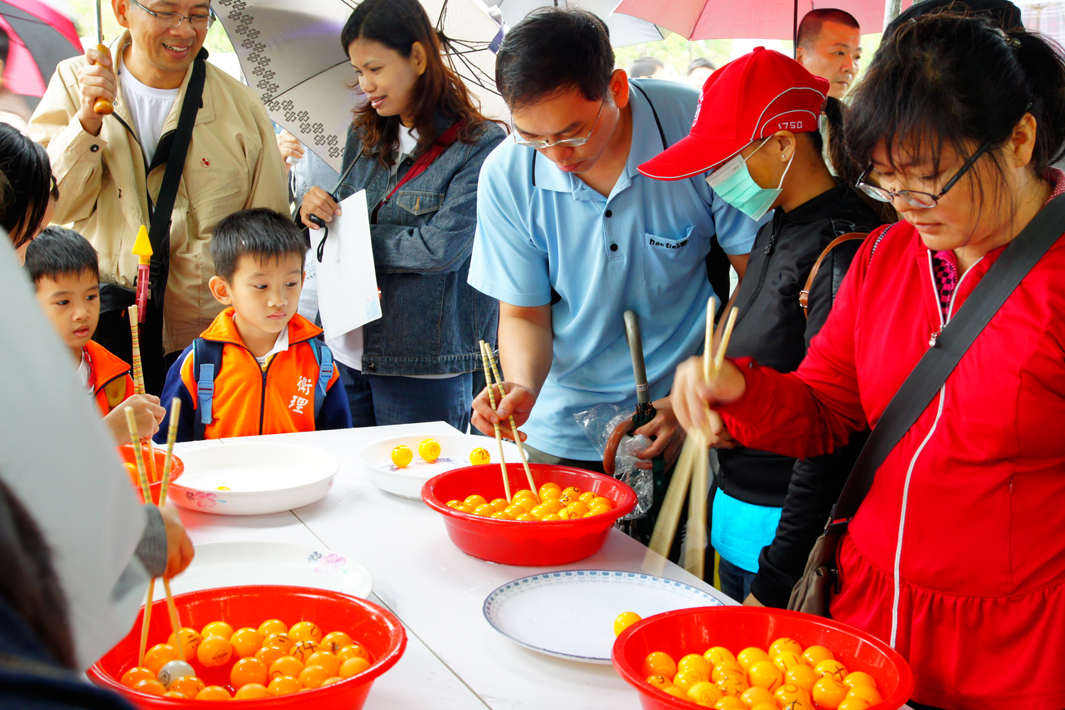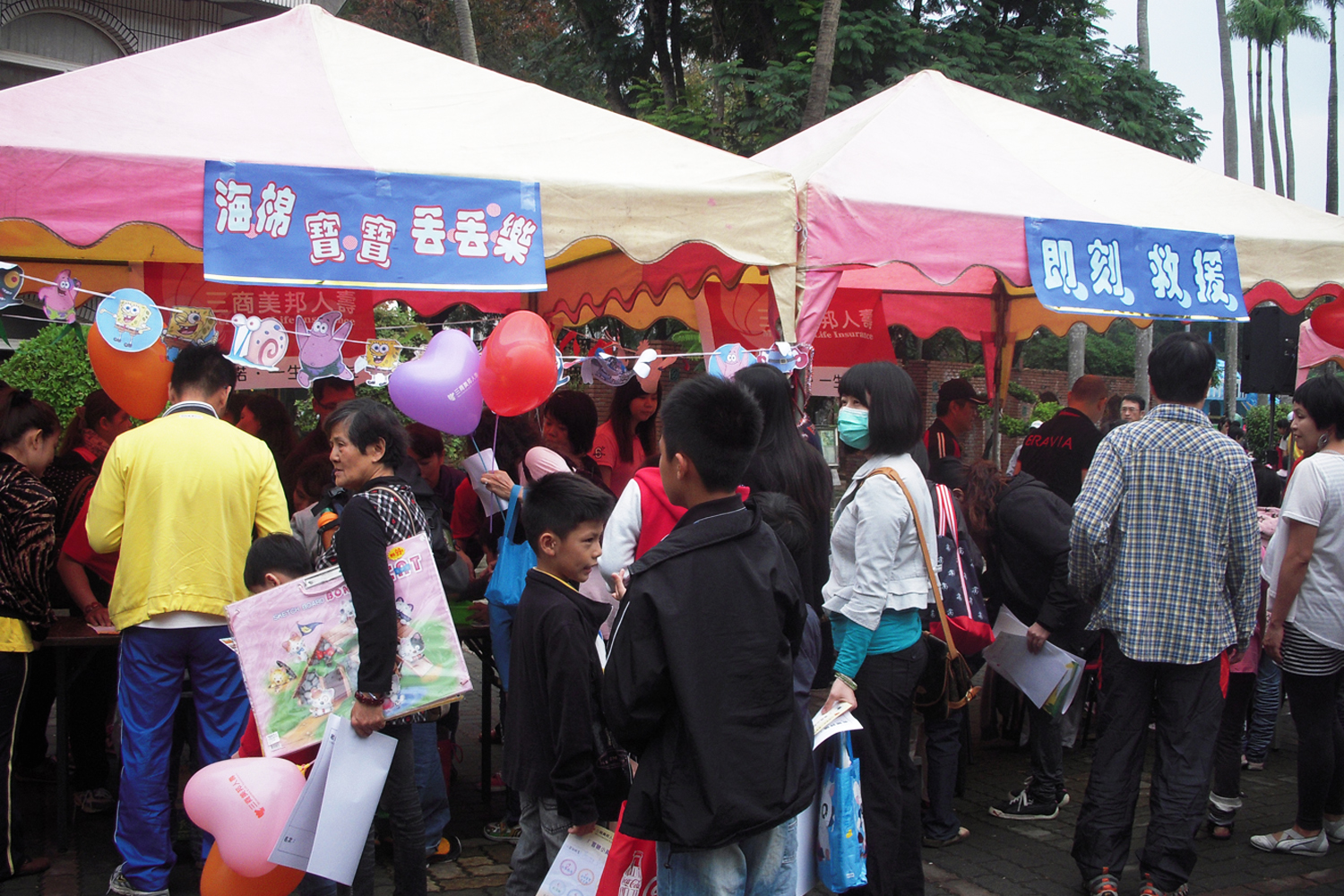 每個攤位都有好玩的小遊戲,大家紛紛排隊體驗。