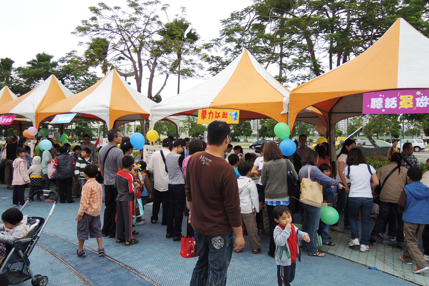 攤位種類好多,小朋友排隊等著體驗呢!