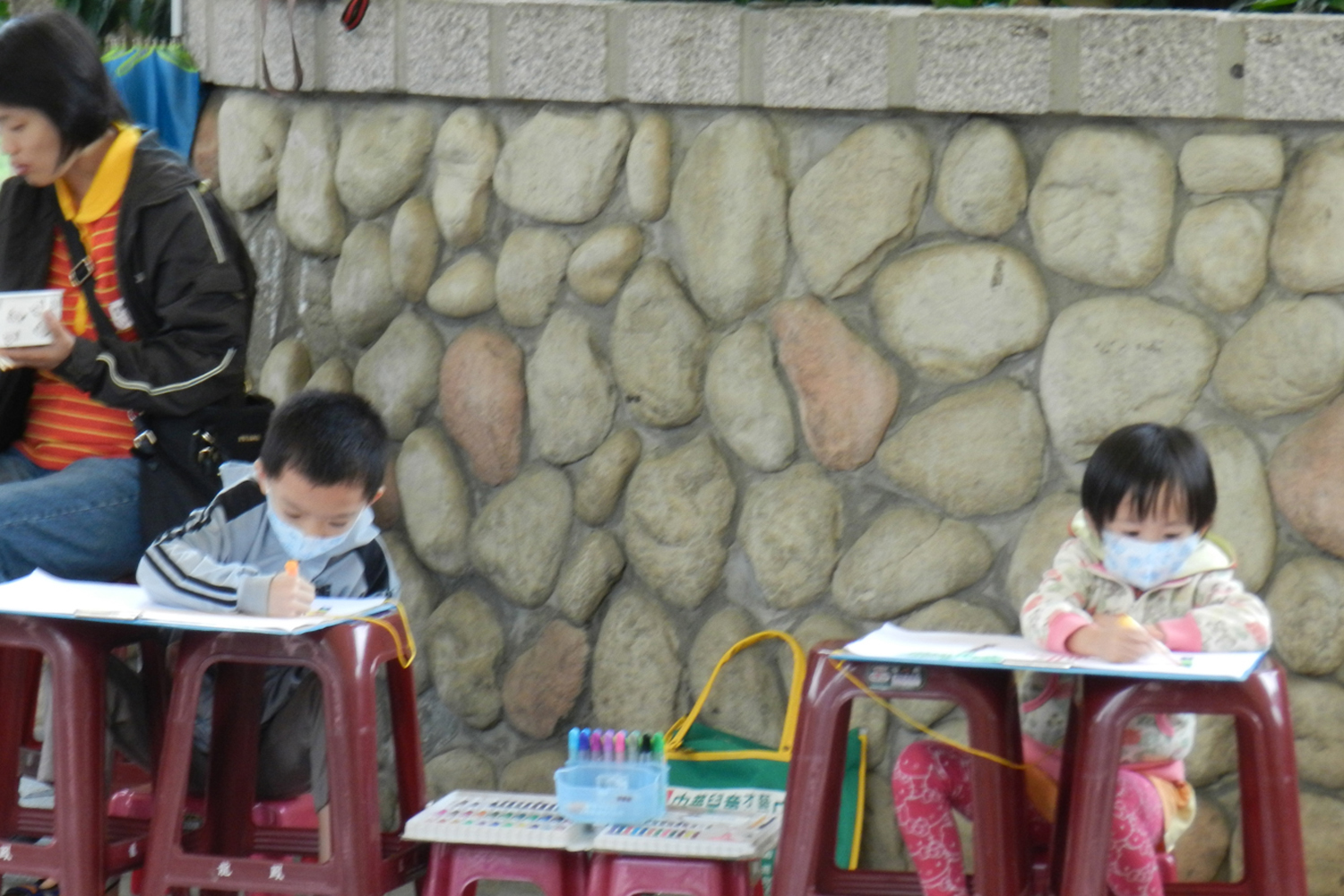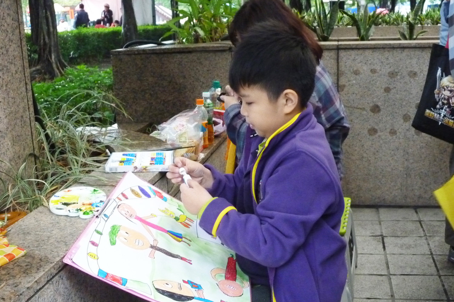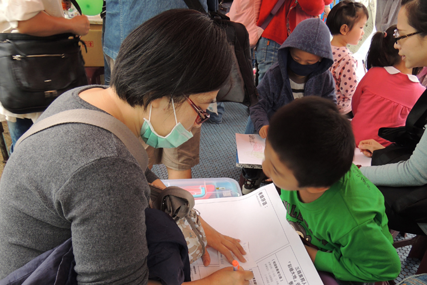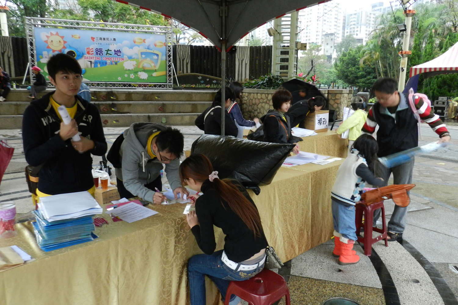 雖然天候不佳,小朋友還是照常來領取畫紙,開始畫畫囉!