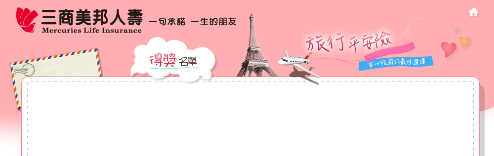 - 若有需要,得獎人須同意出席三商美邦人壽針對本活動所安排的一切公關及宣傳活動,並同意照片及錄像可供宣傳之用,三商美邦人壽不需另行通知或支付費用。